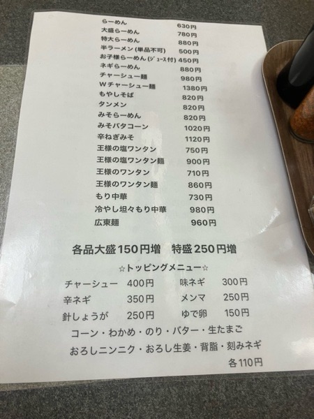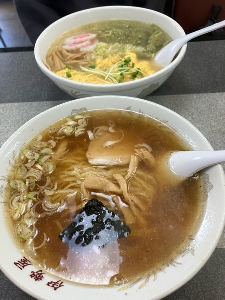 瞬ぴぃは、ノーマルラーメンで 奥様はイチオシの王様の塩ワンタンメン。