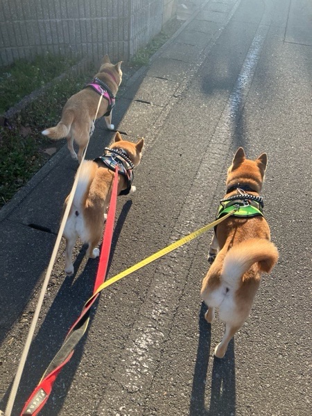 出発して30秒で、ワッチャカのリードはネジネジ😅