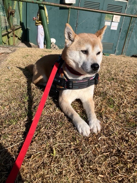みるく先生、良い子に伏せをしておりますが、野球馬に背を向けておりました😱