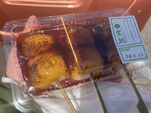 アグリタウンのIさんに おつかいものの苺をお願いしてましたので、受け取りに行きまして、和菓子屋さんへ移動しまして みたらし団子をGET!