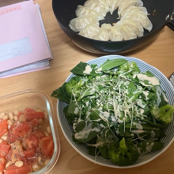 晩酌タイムは、お野菜多めで メインは餃子🥟