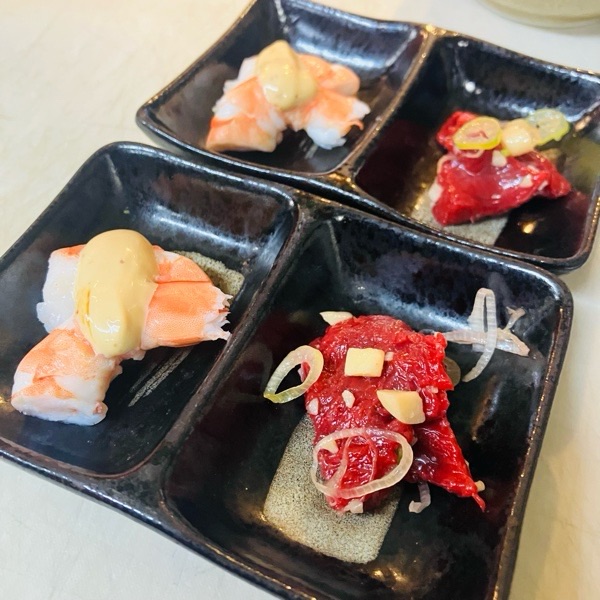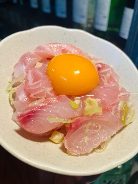 活〆メジナの塩ユッケ。