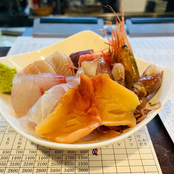 豊洲便が到着しまして、入荷しましたのは 活〆釣り真鯵・甘海老・赤貝。