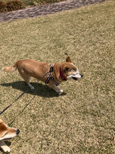 尻尾高く、スマイル全開のヒバ子さん🙌