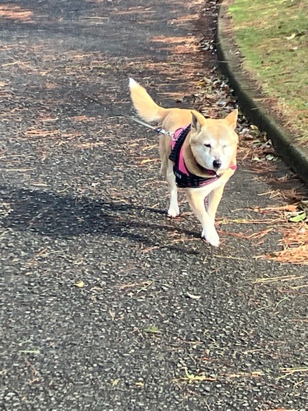 お婆ちゃんワンコのヒバ子さん、元気に 朝の お散歩👏