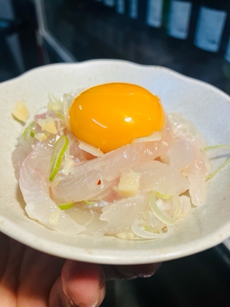 天然平目の塩ユッケ。