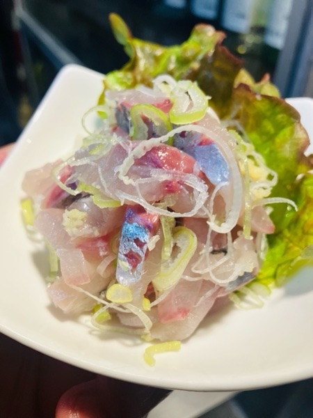 活〆釣り真鯵のタタキ。