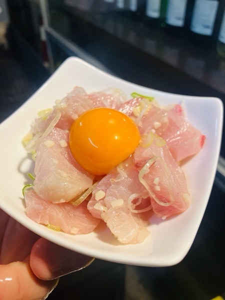 天然鰤の塩ユッケ。