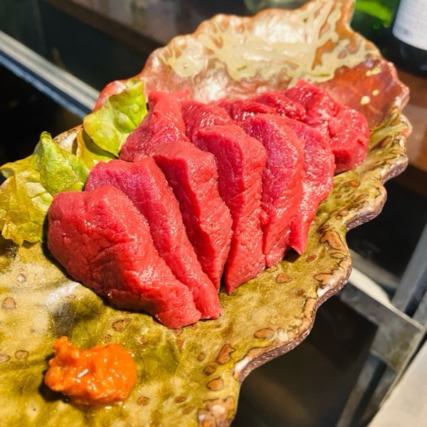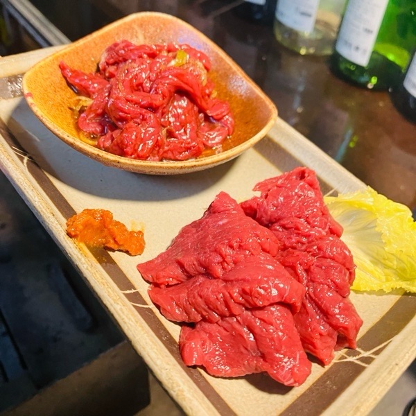 会津馬刺しと桜ユッケのハーフ&ハーフ。