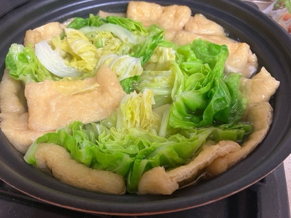 晩酌タイムは、春キャベツをタップリ使いましての白だし鍋♪(*^^)o∀*∀o(^^*)♪